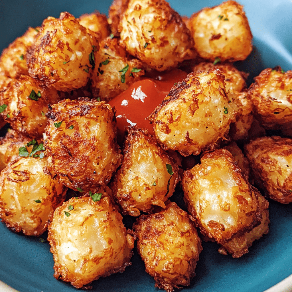 - Garnish and Serve: Once the tater tots are golden brown and crispy, transfer them to a serving platter. Garnish with fresh parsley or chives, if desired, and serve immediately with your favorite dipping sauces like ketchup, ranch, or aioli.