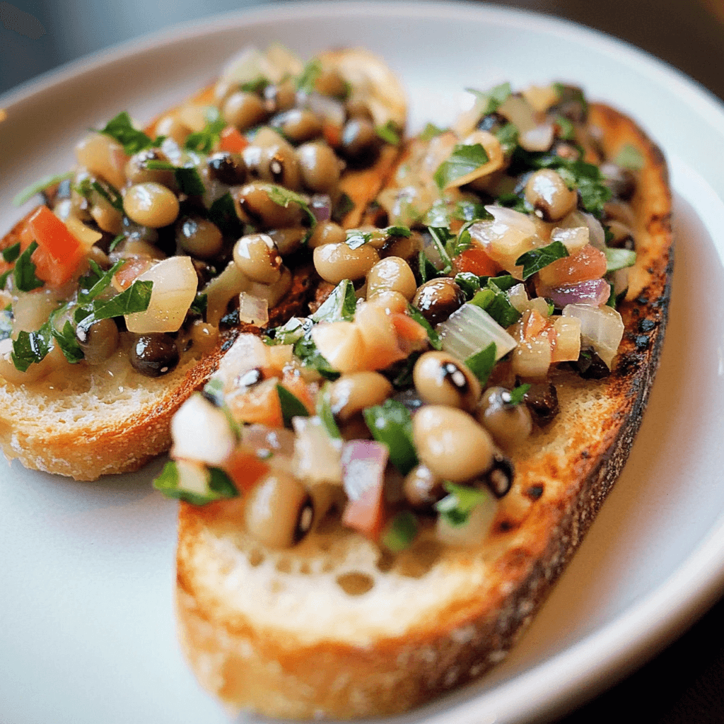 - Avocado and Black-Eyed Pea Bruschetta: Mash some ripe avocado and layer it underneath the black-eyed pea topping for a creamy texture.