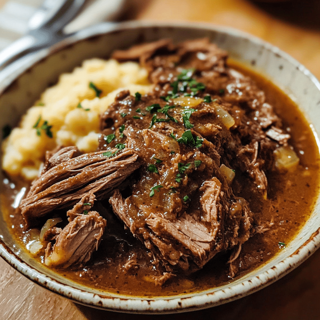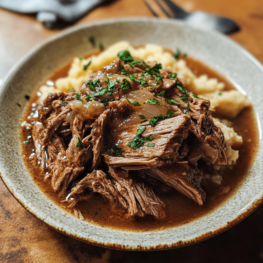 - Perfectly Tender: The slow-cooking method ensures the beef roast is incredibly tender and easy to shred, making every bite melt in your mouth.