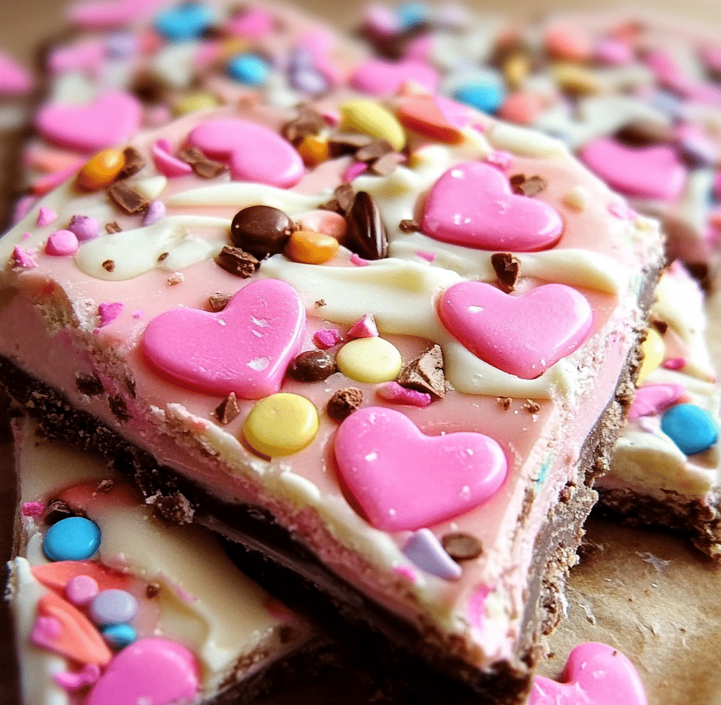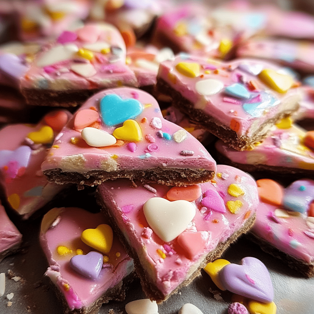 - Chocolate-Dipped Candy Heart Bark: Dip the edges of the bark in melted milk or dark chocolate for a more decadent treat.