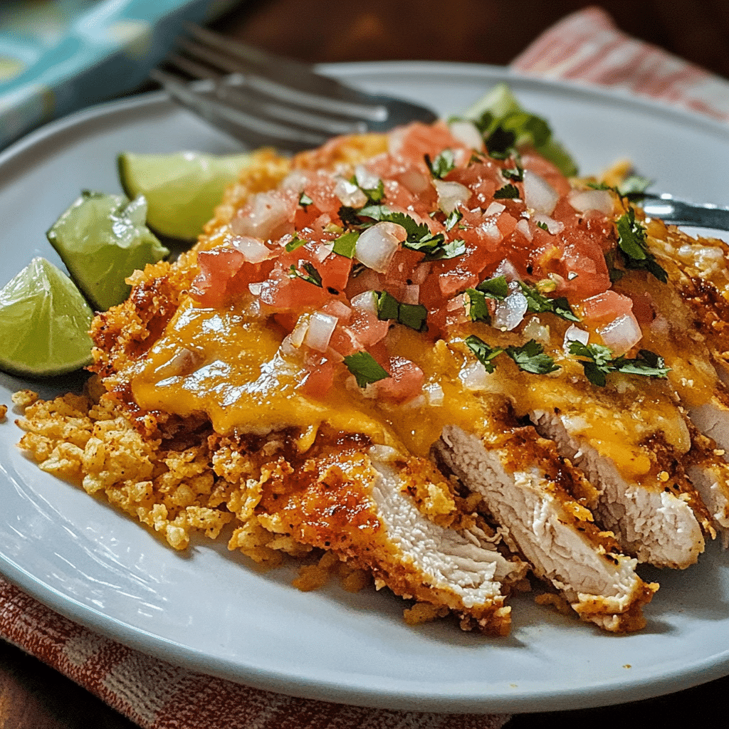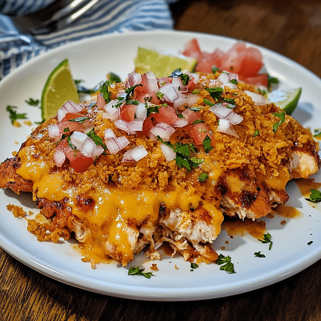 - Garnish and Serve: Once the cheese is melted, remove the chicken from the oven. If desired, top with diced onions, sliced jalapeños, or avocado for extra flavor and texture. Garnish with fresh cilantro and a squeeze of lime for a zesty finish.