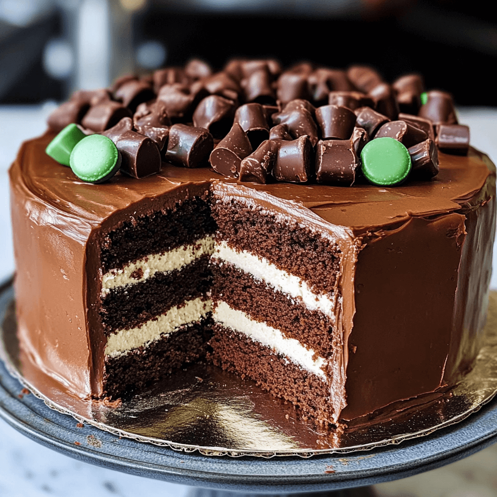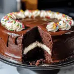- Cut and Serve: After the cake has chilled, cut it into slices and serve. The layers of chocolate cake, creamy filling, and ganache will make for a decadent dessert experience.