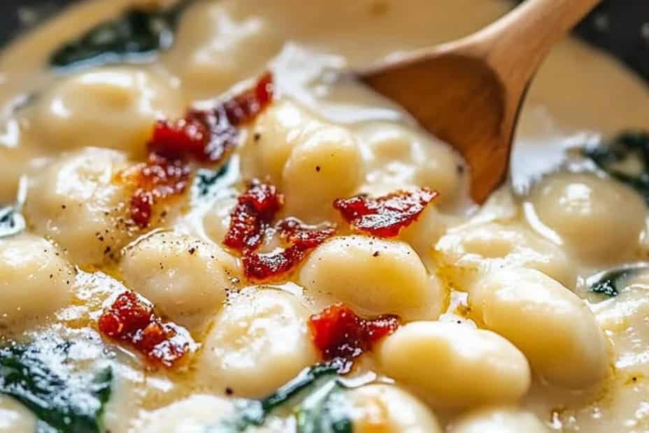 5. Combine with Gnocchi: Add the cooked gnocchi to the skillet, tossing to coat in the creamy sauce. Season with salt and pepper to taste.