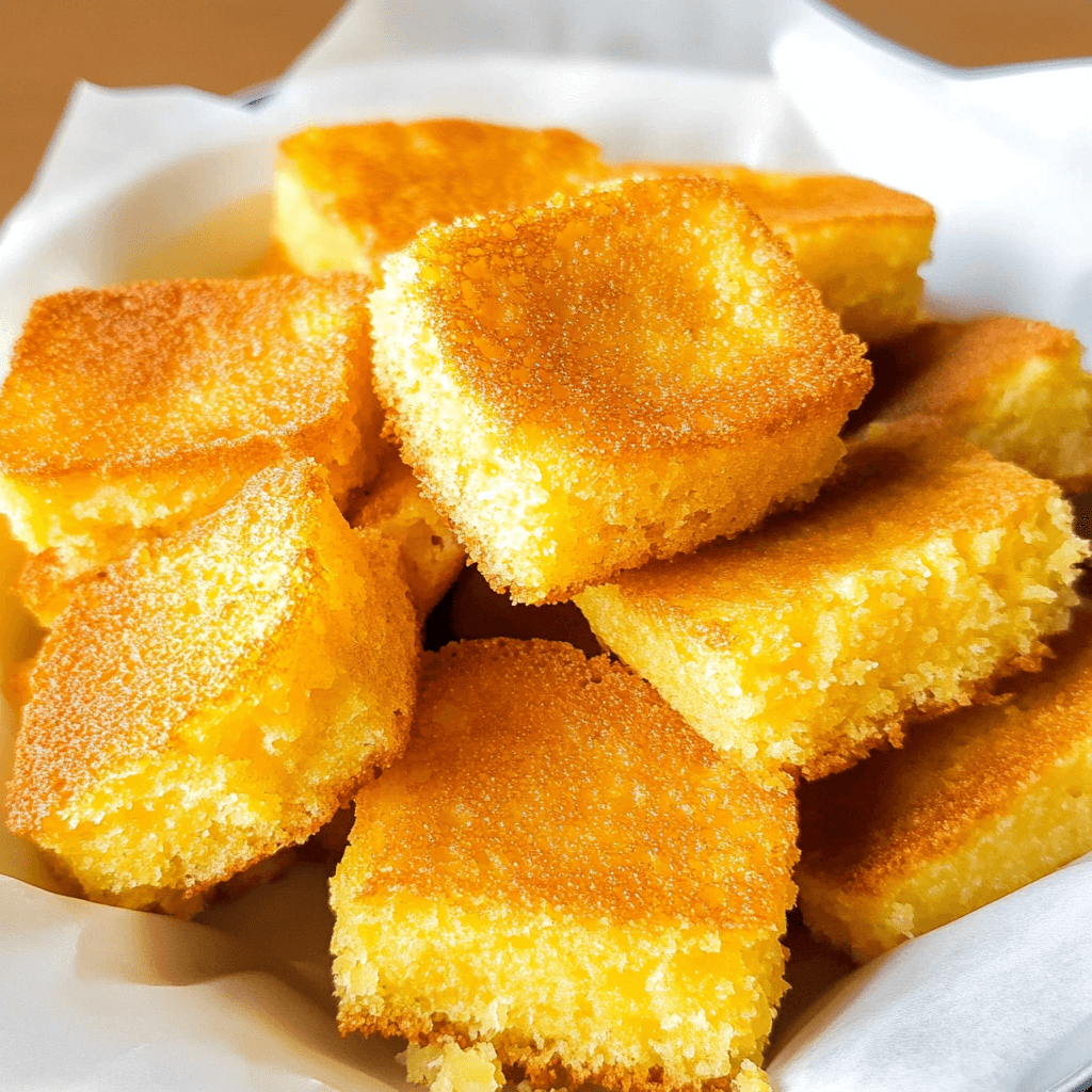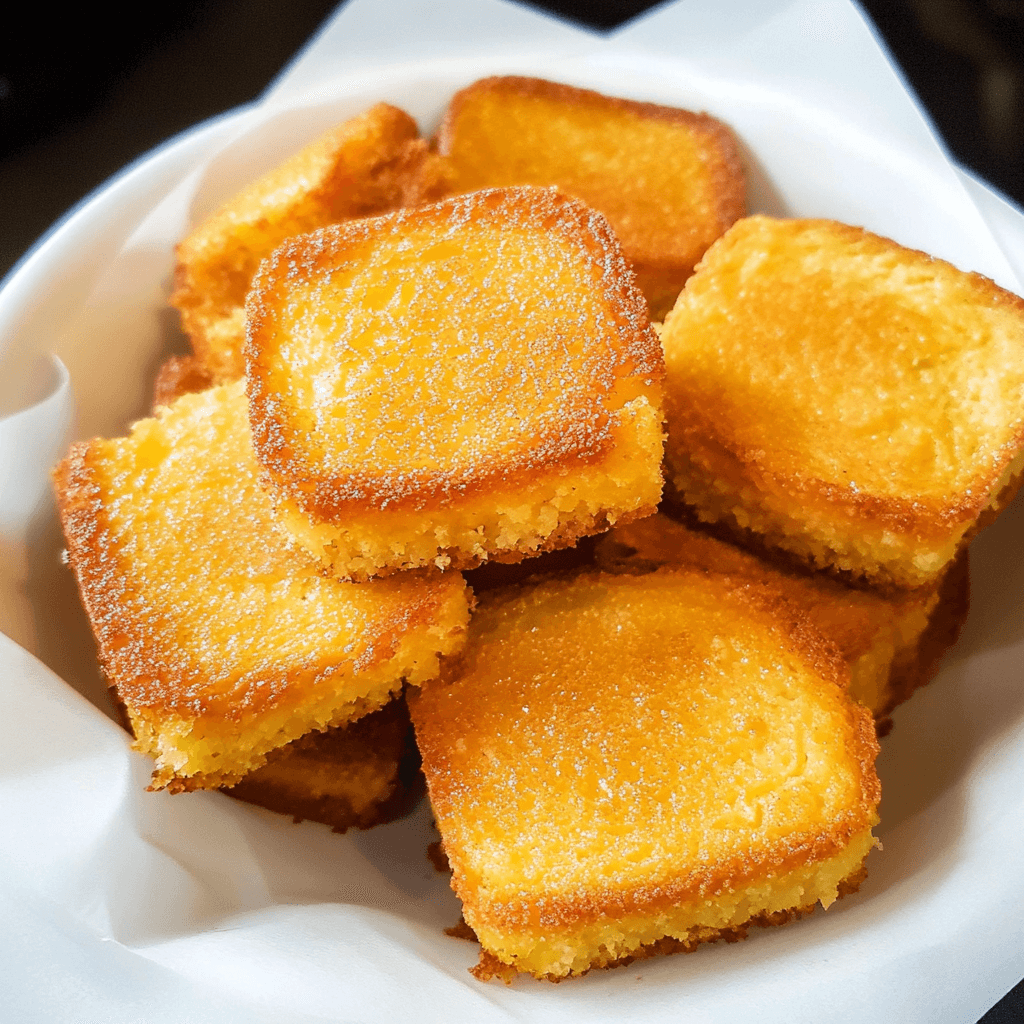 - Crispy and Golden: The cornbread is fried to perfection, creating a crunchy crust that contrasts wonderfully with its soft, tender interior.