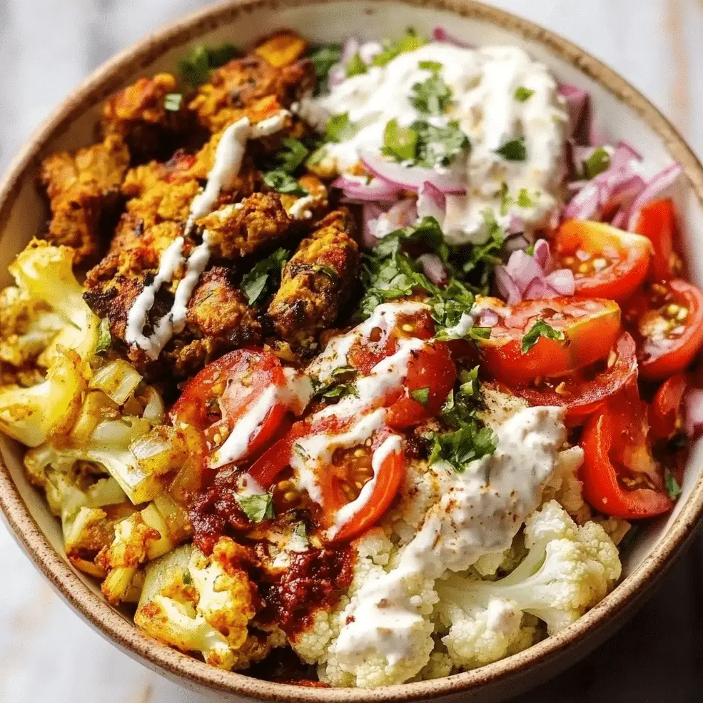 - Tahini & Yogurt Sauce: The creamy white sauce adds a smooth, tangy contrast to the spicy cauliflower and is a hallmark of street food-inspired bowls.