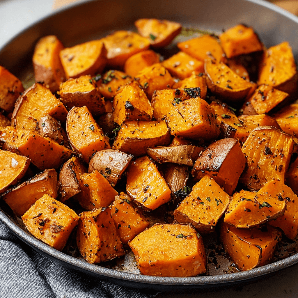 - Garlic Herb Roasted Sweet Potatoes: Add fresh garlic, rosemary, and thyme to the seasoning mix for a savory, herbaceous twist.