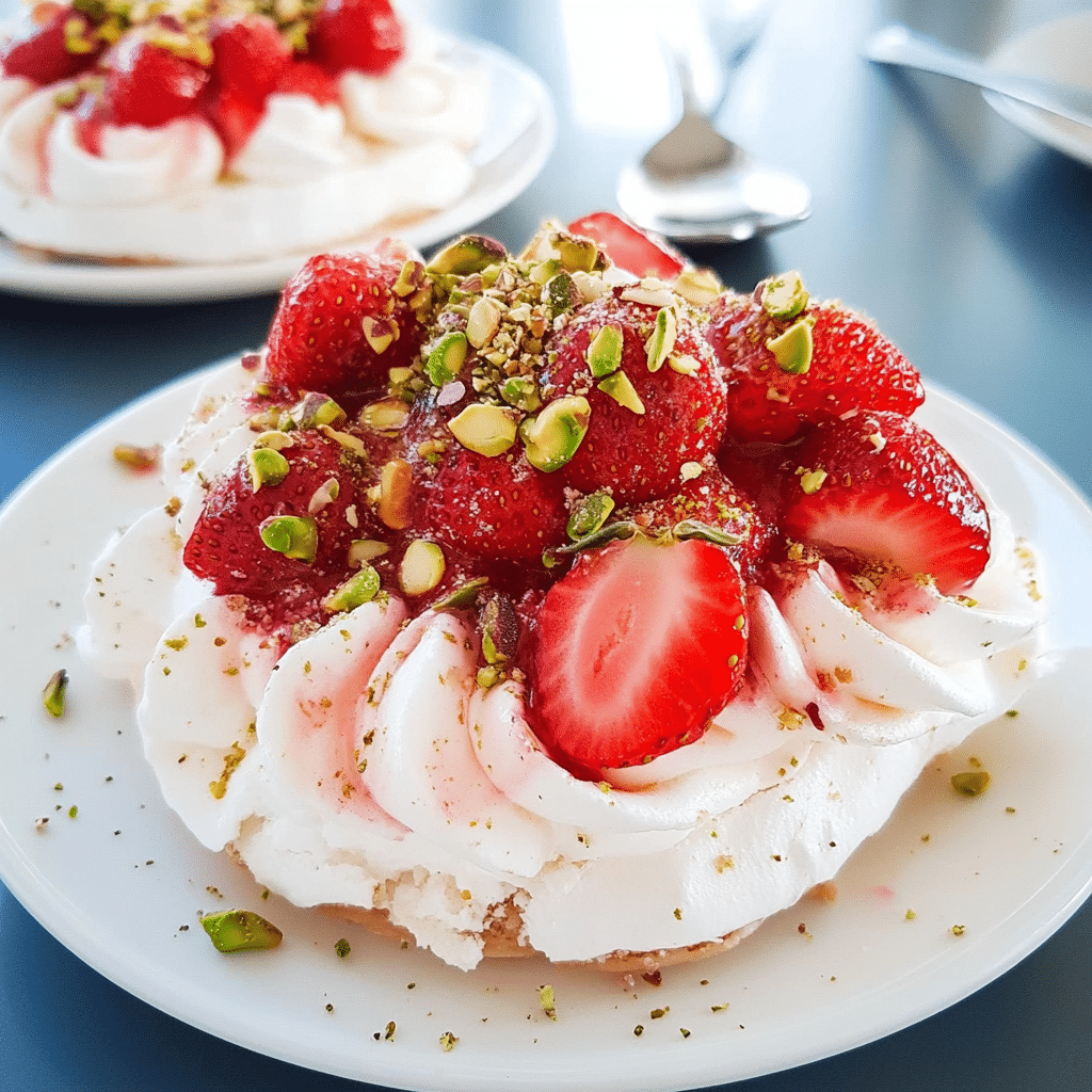 Pistachios are a classic topping for this pavlova, but you can experiment with other nuts like almonds, hazelnuts, or walnuts for a different flavor and texture.